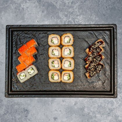 Темпура чикен, Темпура сяке, Темпура унаги, Темпура ясай, Темпура кани (40 шт.). Прилагается 3 бесплатных комплекта специй