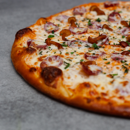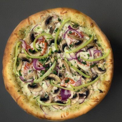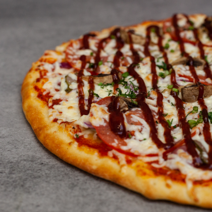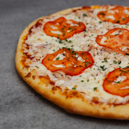 Тесто, красный соус, сыр моцарелла, помидоры, прованские травы, чесночное масло (30 см)