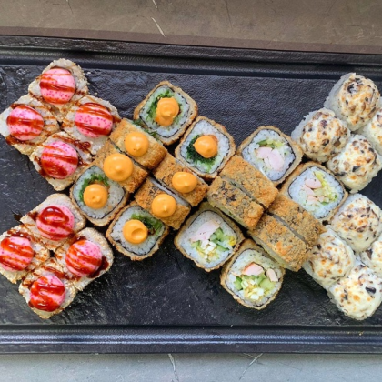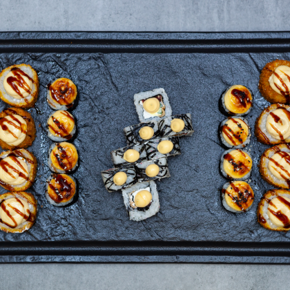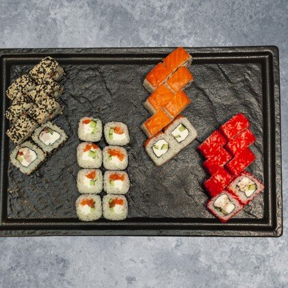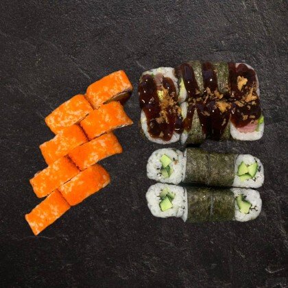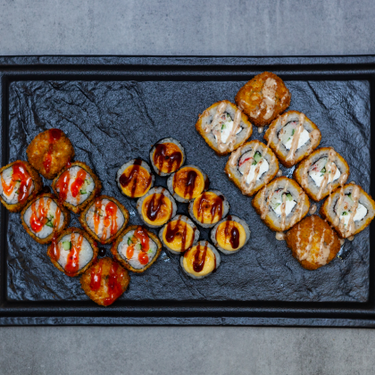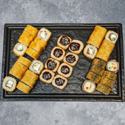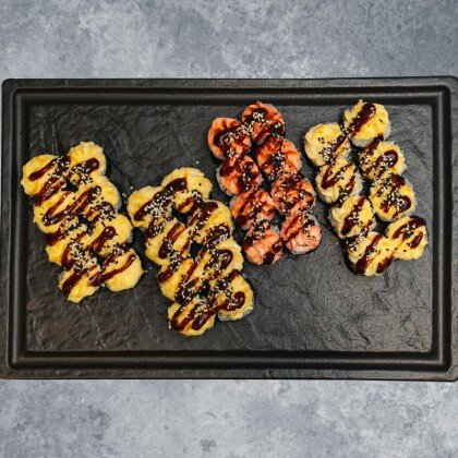 Филадельфия Лайт, Темпура с креветкой, Канада чиз (24 шт.). Прилагается 2 бесплатных комплекта специй